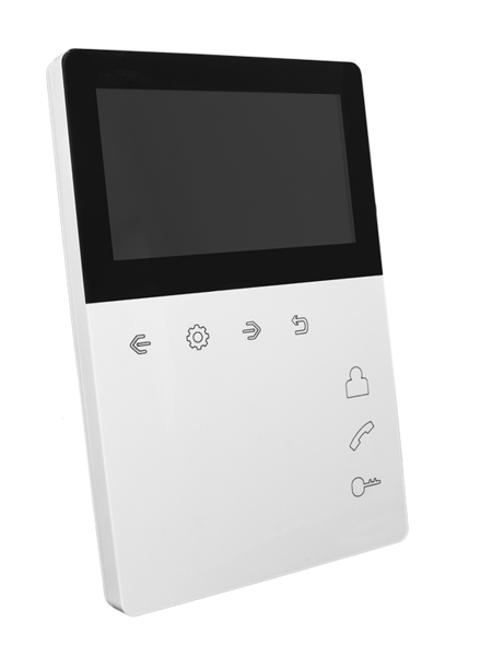 Монитор домофона с экраном 4,3 дюйма со встроенным блоком питания. Всё управление осуществляется сенсорными кнопками.