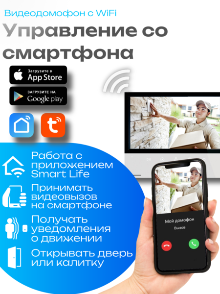Встроенный модуль Wi-Fi (2,4 ГГц) для отправки уведомлений о вызове или просмотра вызывных панелей на смартфоне.