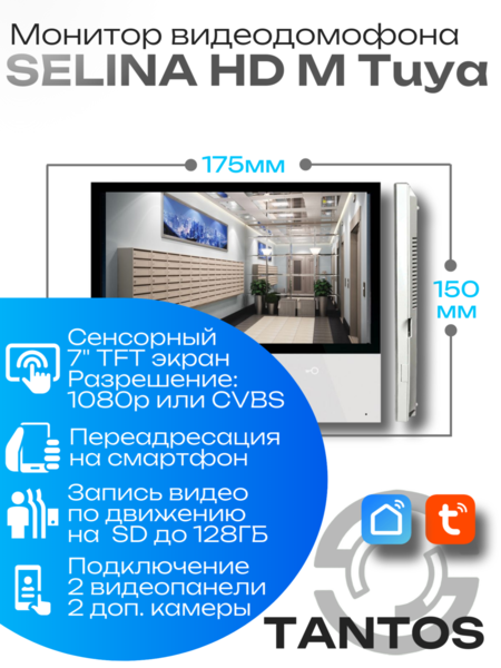 Монитор видеодомофона TNATOS Selina HD M Tuya