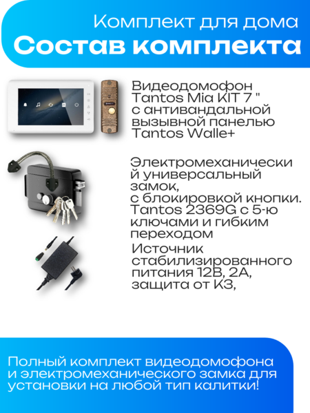 Комплект видеодомофона с замком TANTOS MIA KIT LOCK