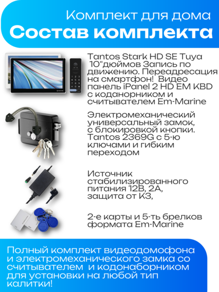 Монитор имеет встроенный блок питания, что существенно упрощает подключение устройства. Корпус отлично подойдет для большинства жилых и офисных помещений и впишется в интерьер. Вызывная панель антивандальная формата AHD 1080p (720p/CVBS (PAL). В комплекте замок электромеханический, накладной, универсальный, с блокировкой кнопки, блок питания и гибкий переход.Стандартная четырех проводная схема подключения.Монитор Tantos Stark HD SE Tuya (Цвет на выбор Белый или Черный)