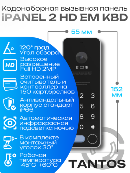 Размеры: 175 x 112 x 20 ммВызывная панель Tantos iPanel 2 HD EM KBD