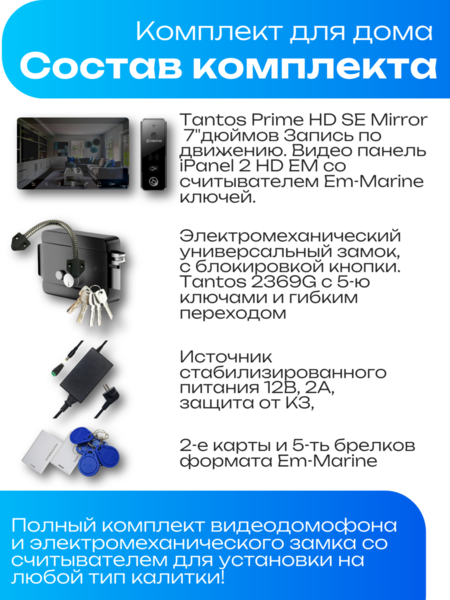 Комплект видеодомофона с замком PRIME HD SE Mirror EM-LOCK